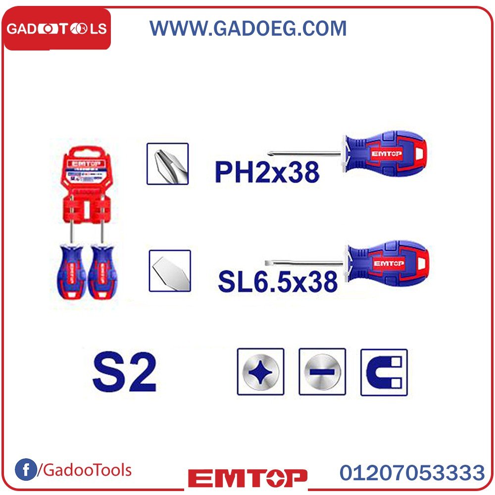 2 قطعة مجموعة مفك البراغيS2 ، ساق مستديرةSL6.5 * 6 * 38 ملمPH2 * 6 * 38 مممعبأة بواسطة شماعات بلاستيكية