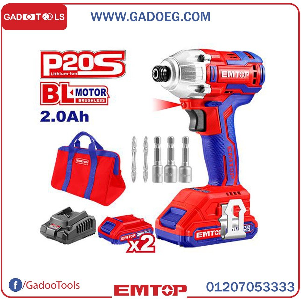 دريل 1/4 بوصة موتور بروشليس 2 بطاريه + شنطه قماش ECDLIR20221