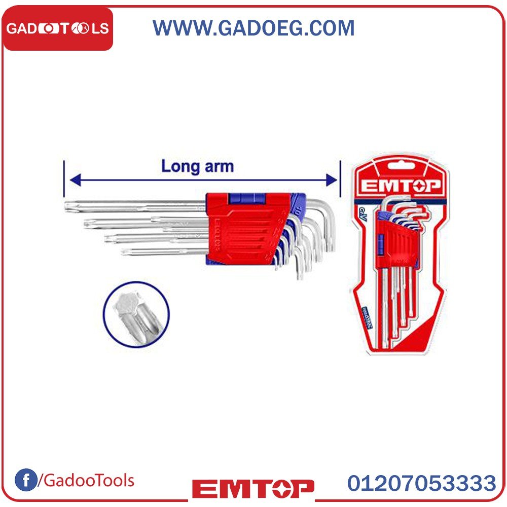 9 قطع مجموعة مفتاح توركسالمادة : Cr-Vالحجم: T10-T50ذراع طويلةالمعالجة الحرارية وصفيحة الكروممعبأة بواسطة نفطة مزدوجة